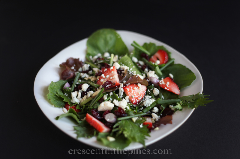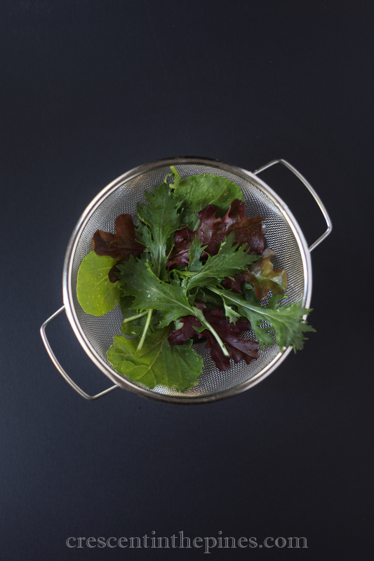 The days are rainy and a little chilled lately, but tromping around the muddy orchard and garden in worn green rain boots, weeding and admiring, it becomes a welcome rain dance. And life has given me a mess of baby lettuce and greens and I’m making salad. Upon discovering a selection of almost empty microgreen and lettuce seeds in my seed box, I decided to dump them all and see what came up. Happily, they’ve produced more than enough to keep me in salads until my larger leaf lettuces catch up and there is nothing, I mean nothing, like fresh lettuce for a salad. So in spite of these rainy cool days, there’s lettuce, green onions, and strawberries to enjoy, thinking of the warmer days around the corner and splashing through the puddles until then.